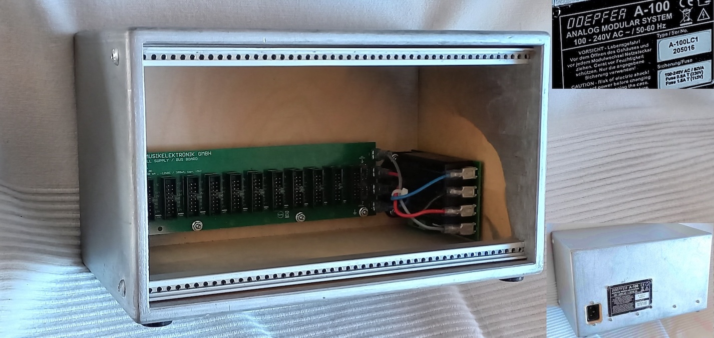 Doepfer wood case capable of holding up to 48hp of Eurorack modules. integrated A-100 power supply and built-in busboard with 8 power slots. Great for a nice small compact modular setup. Painted in Silver. Rear IEC socket. Includes power cord. |