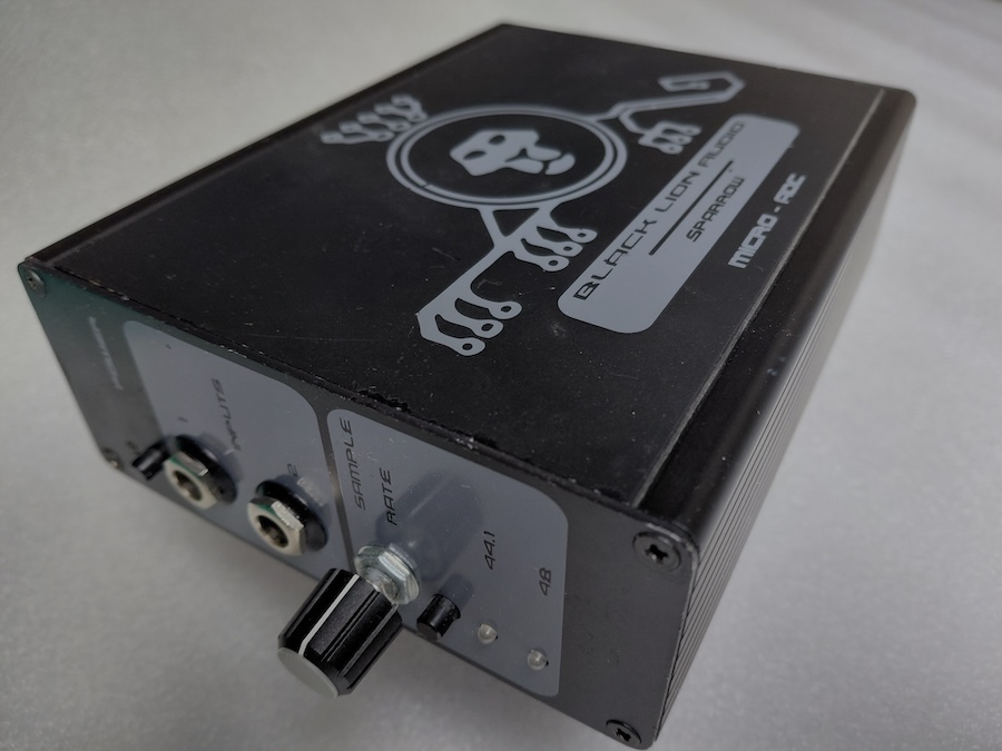 Black Lion Sparrow black hi-end 24 bit stereo AD converter with hi-quality crystal clock. Two balanced TRS inputs. AES/EBU or SPDIF outs. Supports 44.1kHz up to 192 kHz. Please see pics. As is. No PSU, so untested. |