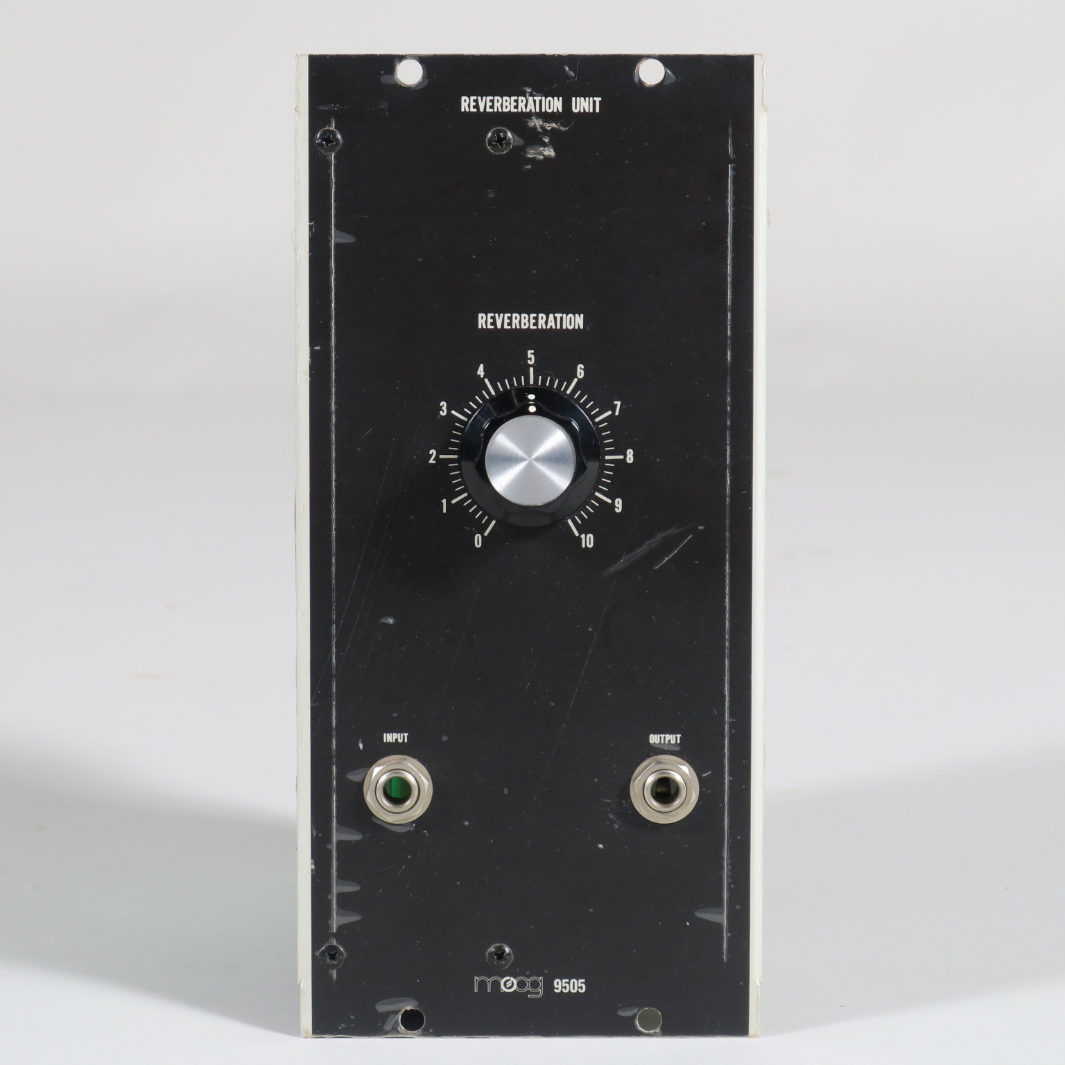 Notice that it needs a modular input voltage like from other Moog Modular modules. If you’re building up a Moog system it’s a great and rare addition. The most left position is dry, mix in the middle and wet when turned fully clockwise.
