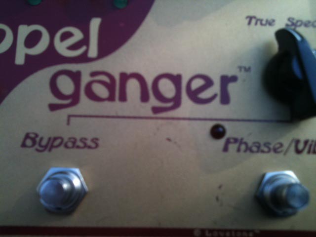 The Doppelganger is/was a four-stage optically modulated phaser-vibrato with three footswitches, one for bypass, one to select phase-vib and a third switch to select twin oscillators with independent rates and depths as an alternative to the main LFO. The main LFO may be bi-phased in a figure-8 pattern on the two notch bands for a subtler sweep. The blend of signal is adjustable and there is a resonance control. The sweep of both low and high frequencies is adjustable and there is provision for a pedal to alter rate as well as option to use a “light jack” for optical control of rate (as with the Meatball, this was a retro-fit possibilty so needs plugging in half-way to work!). In bypass it is possible to select hard-wire bypass or carry the signal statically via the phase filter for a “spectral EQ” sound quality – very musical and nice for treating instrument sounds at mixdown in the studio while not necessarily sweeping them.